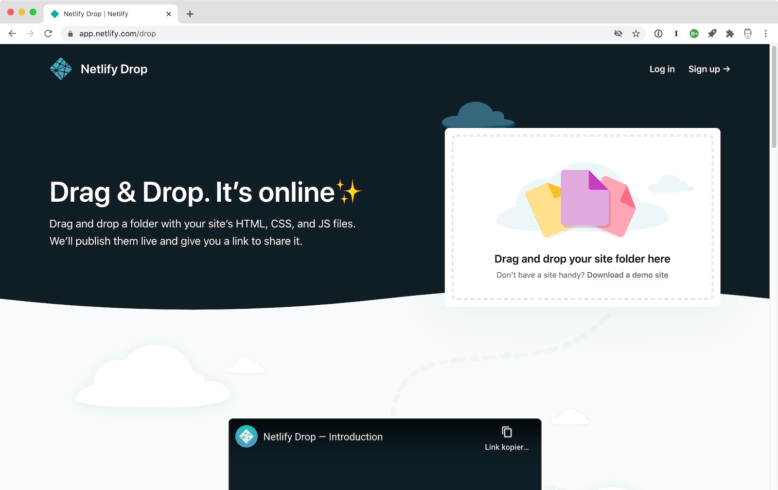 Le moyen le plus simple de publier gratuitement un site web sur Internet est de faire appel à des fournisseurs comme Netlify ou Tiiny Host . Vous pouvez simplement faire glisser le contenu et les sous-dossiers de votre site web dans la fenêtre du navigateur. Le domaine et l'hébergement seront générés automatiquement pour vous.